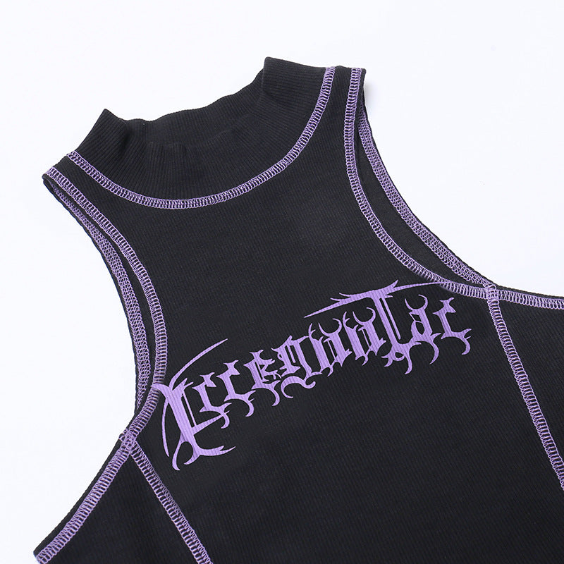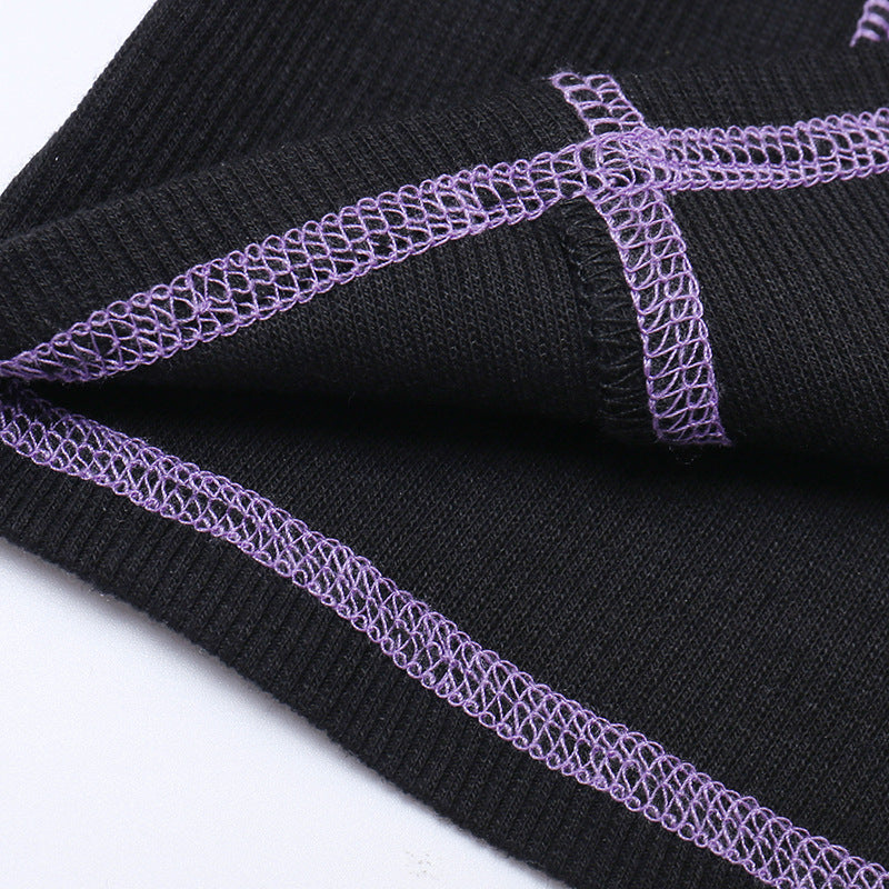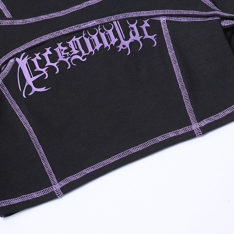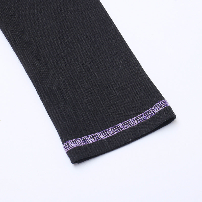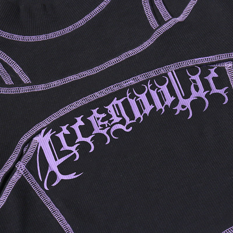 Punk Style Black Long Sleeve Fake Two Piece Crop Top YL22073